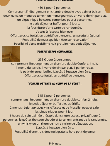 You'll be welcomed into a bucolic setting, in the heart of the Vosges forest, where the sound of birdsong enhances the atmosphere. Your double room will be equipped with a bath and a balcony, offering a magnificent view of the greenery as far as the eye can see.